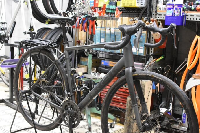 こんにちは! 京都出町TAKENAKAです。トレックのオールロードをご愛用のお客様から、シフト調整(変速機調整)を承りました。ありがとうございます。大学のサイクリングサークルに所属されてツーリングを楽しんでおられます。リアラック(荷台)に荷物を積んで古チューブで固定、 かなり硬派! この春合宿ツーリングは雪の残る北海道を予定されているそうです。