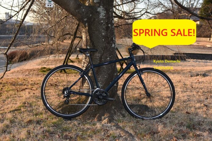こんにちは! 京都出町TAKENAKAです。アルミフレームを使った軽快なクロスバイクがスプリングセール! 神戸の老舗インポーター、MARUIさんがプロデュースする EM CYCLESからC101をご用意しました。オーソドックスな真円アルミチューブで構成されるフレームはシンプルなルックスと軽快な走り! 定価¥59,400(税込)をスプリングセール¥49,800(税込)! お問い合わせお待ちしております。