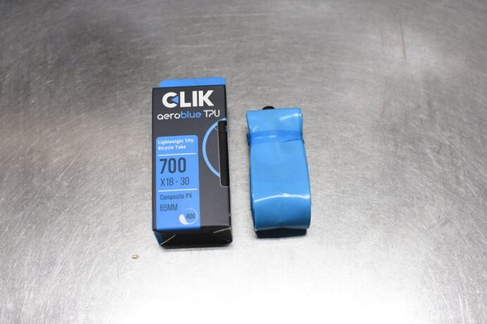 こんにちは! 京都出町TAKENAKAです。たいへん使いやすいと話題のCLIK(クリック)バルブを使ってみたかったのですが、TPUチューブを使っている私は使えませんでした。多くのTPUチューブは樹脂製フレンチバルブを使っています。その場合、バルブコアを外さないように指示されていますので、CLIK(クリック)バルブに付け替えることが出来ませんでした。CLIK(クリック)バルブはフレンチバルブの先端部、バルブコアというパーツを外して取り付けます。そこで発売されたのがこのチューブです。CLIK(クリック)バルブ付きTPUチューブ。バルブはアルミ製なので軽量化では多少不利ですが、シュワルベ製ブチルチューブと比較しますと66gも軽くなっています。700×18-30Cはバルブ長48mm、65mm、85mmが有ります。私はグロータック カーボンリム 30mmハイトを使っていますので48mmがよかったのですが残念ながら輸入元在庫切れでしたので65mmです。現在65mmですと当店店頭在庫ございます。¥3,960(税込)