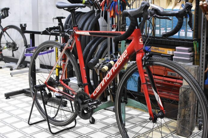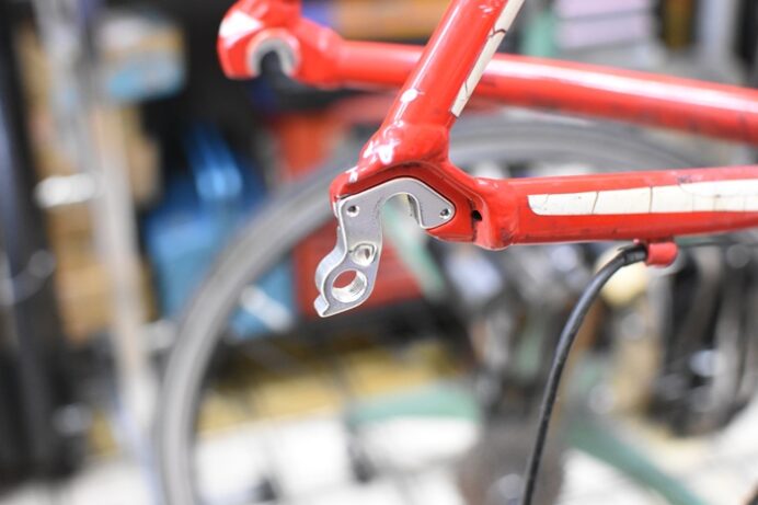 こんにちは! 京都出町TAKENAKAです。ディレイラーハンガーを破損したキャノンデールの修理が完了しました。ディレイラーハンガーはメーカーやモデルで専用品であることが多く上手く入手出来ないこともありますが今回は入手出来ました。タイヤやブレーキシューの交換の他に、リアブレーキキャリパーのクイックリリースが作動不良状態でしたのでクイックリリース部を交換しました。メンテナンスで安心安全!