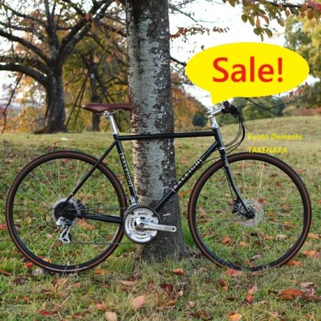 こんにちは! 京都出町TAKENAKAです。店頭在庫RALEIGH(ラレー) クリアランスセール開催中! 細身のクロモリフレームでクラシックテイストに仕上がっていますが、油圧ディスクブレーキなど新しくて使い良いものが採用されている、ラレー RFT。フレームサイズ 520mm、カラー クラブグリーンが1台ございます。写真ではほぼブラックに見えますが深くて濃いメタリック系グリーンです。概ね170cm弱から175cmぐらいの方が乗り良いと思います。RFTの店頭在庫はこの1台のみになりました。定価¥96,800(税込)を25%OFFで¥72,600(税込)です。 その他、ミニベロやちょっと太めのタイヤを履いたモデルもございます。お問い合わせお待ちしております。
