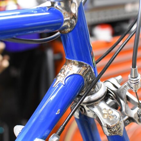 こんにちは! 京都出町TAKENAKAです。長年コルナゴのクロモリフレームをご愛用のお客様からハブのオーバーホールを承りました。ありがとうございます。ヘッドラグのクロームメッキ仕上げはクラシックテイストがアップしますね。もちろんクロモリフレーム、MAKINO(マキノ)もオーダーメイドですのでご希望のカラーやメッキ仕上げが可能です。現在の納期は約6ヶ月となっています。お問い合わせお待ちしております。