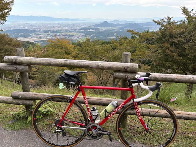 こんにちは! 京都出町TAKENAKAです。クロモリMAKINO(マキノ)をご愛用のYさんが栗東の金勝山(コンゼヤマ)から写真を送って下さいました。秋の空気になり良い景色を楽しまれたようです。