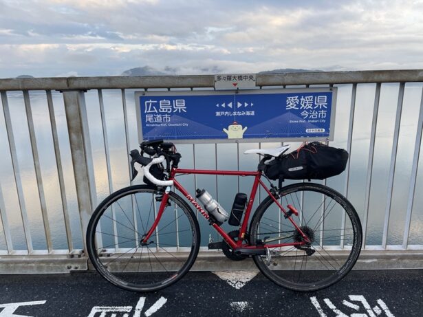こんにちは! 京都出町TAKENAKAです。MAKINO(マキノ)でブルベを楽しんでおられるNさん。先週末はグループで参加するフレッシュというブルベに参加予定でした。四国・山陽方面を約370kmというコースでしたが、メンバーが神戸に集合した時は雨と強風。検討の結果、グループリーダーはDNS(出場辞退)を選択されました。せっかくなので、予定していたコースの一部だけでも走ろうということで、高松から今治まで電車で輪行、今治から尾道までしまなみ海道を走り、尾道から山口県の岩国まで再び輪行して岩国のホテルで一泊。翌朝、岩国の錦帯橋を観てから、ゴール受付の周防大島まで走り、懇親会に参加というサイクリングを楽しまれました。