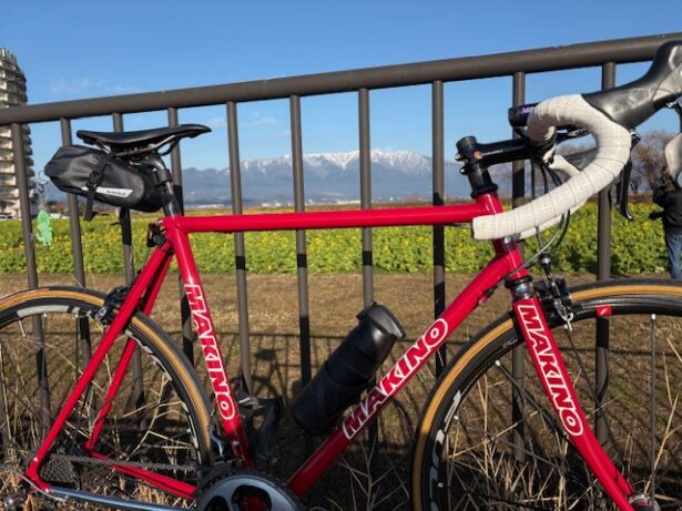 こんにちは! 京都出町TAKENAKAです。朝ポタメンバーのYさんが滋賀県守山市の菜の花畑から写真を送って下さいました。ありがとうございます。黄色い菜の花と比良山系の白い雪がいい感じですね。