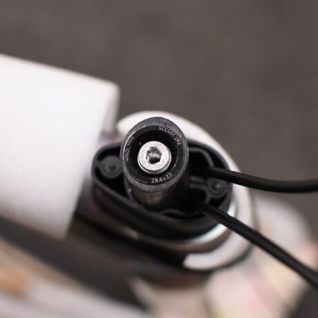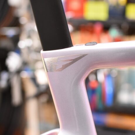 こんにちは! 京都出町TAKENAKAです。ニューモデル(マイナーチェンジ)2026 PINARELLO(ピナレロ)F5を制作中です。外観は現行DOGMA(ドグマ)Fをベースにしたデザインになりました。外から見えない部分ではフォークコラムの断面が楕円になっています。これは主にオイルラインのルーティングをよりスムーズにするために変更されたようです。この変更に伴いましてハンドルステムも新設計されました。このInterstellar Grey Shinyというフレームカラーは光の当たり方で色味が変わるとてもきれいなカラーです。