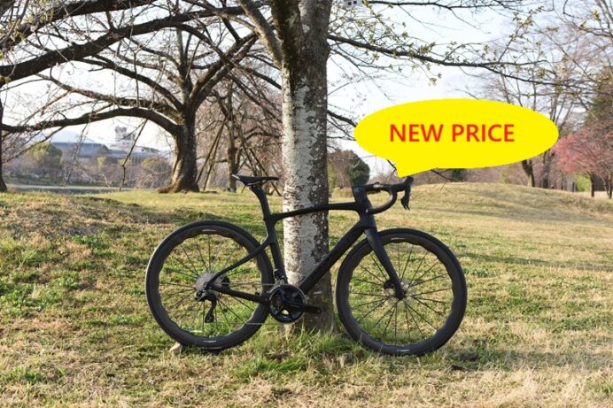 こんにちは! 京都出町TAKENAKAです。PINARELLO(ピナレロ)の一部モデルがニュープライスでお求めやすくなりました。例えばX3は¥476,000(税込)です。ピナレロジャパンがご用意していますWUP(ホイールアッププログラム)をご利用いただけますし、当店独自にSCOM(スコム)カーボンホイールもお得プライスで選択していただけます。写真のX3はウェーブデザインのSCOM VOSO LITE ULTIMATE 45/50(1,320g)を装着しています。SCOM VOSO LITE ULTIMATE 45/50は定価¥121,000(税込)ですがピナレロ完成車お買い上げ時ですとプラス10万円で、X3ですと¥576,000(税込)です。X3以外にもニュープライスのモデルがあります。お問い合わせお待ちしております。