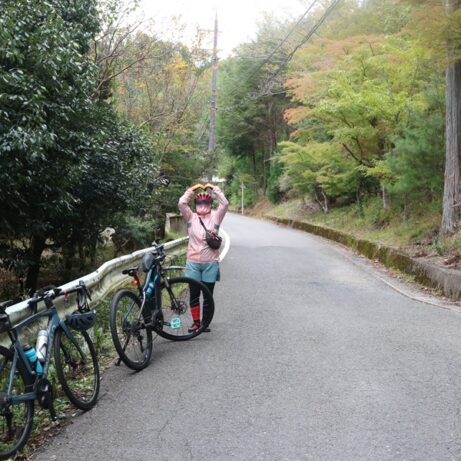 こんにちは! 京都出町TAKENAKAです。10月22日の水曜ライドは京見峠まで往復しました。パナソニック Eスポーツバイクに乗るうちの奥さんと8時ぐらいに出町をスタートしました。上り口近くの気温表示は13℃で急に気温が下がりまして、ウエアーもこの秋初のウインドブレーカーにニッカーを着用です。このところ水曜日、日曜日と乗れていなかったので少し雨の心配がありましたがスタートしました。夏と違ってこれからは雨に濡れると身体が冷えて困りますが幸い雨に合わずに走れました。来週の水曜日は朝から用事があり走れないので走れて良かったです。