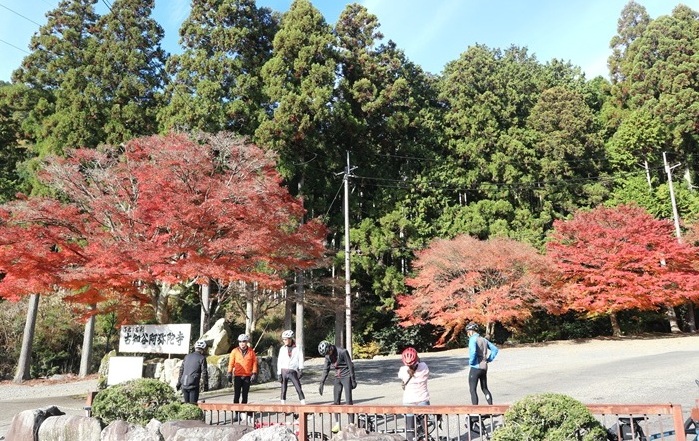 こんにちは! 京都出町TAKENAKAです。11月23日(日)、朝ポタ大原へ行って来ました。ご参加ありがとうございました。少し寒いけど青空が広がる気持ち良い朝。8時に出町をスタートしまして、雲ケ畑入り口の気温表示は行きが6℃、帰りは10℃まで上がっていました。いつもは大原里の駅近くで折り返しますが3kmほど北上しまして、古知谷阿弥陀寺へ行きました。一番見頃は過ぎたようでしたがきれいな紅葉でした。あちらこちらできれいな紅葉・黄葉を見ることができ、好天に恵まれた楽しい朝のサイクリングでした。