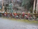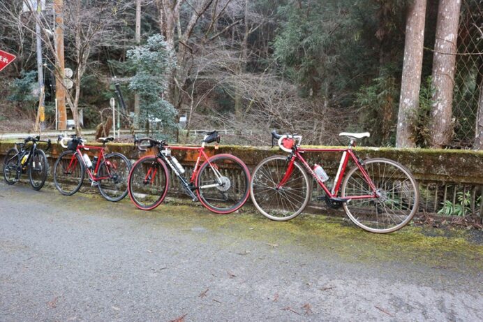 こんにちは! 京都出町TAKENAKAです。1月18日(日)朝ポタ、雲ケ畑へ行って来ました。ご参加ありがとうございました。8時30分にスタートしまして、雲ケ畑入り口の気温表示は行きが5℃、帰りは9℃まで上がっていました。青空が広がり、ほとんど風もなく走りやすい朝でした。今朝の自転車は多彩でクロモリフレームではMAKINO(マキノ)、カーボンフレームではPINARELLO(ピナレロ)など、チタンフレームですとSPEEDCOG(スピードコグ) NEO CLASSIC ATOMやMOOTS。加えて、Mさんが最近入手されたEスポーツバイクなど等。ちなみに、Tさん親子が1・2フィニッシュでした。