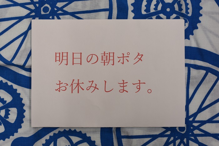 こんにちは! 京都出町TAKENAKAです。2月8日(日)の朝ポタは天候を考慮しまして、休ませていただきます。店は12~18時で営業予定です。ご不便をおかけいたしますがよろしくお願い申し上げます。