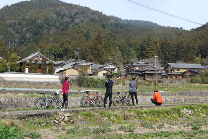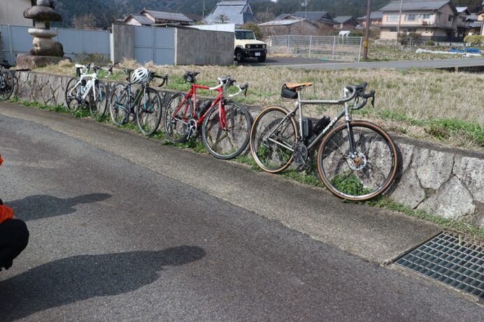 こんにちは! 京都出町TAKENAKAです。3月22日(日)朝ポタ、大原へ行きました。ご参加ありがとうございました。8時30分に出町をスタートしまして、雲ケ畑入り口の気温表示は行きが8℃、帰りは12℃まで上がっていました。ひんやりとした朝でしたが徐々に上がり走りやすい朝でした。自転車を楽しんでおられる方々をたくさん見かけました。今朝の参加車はチタン、アルミ、クロモリ、カーボンと多彩でフレーム素材の話題になりました。やはり、それぞれの良さがありますね。
