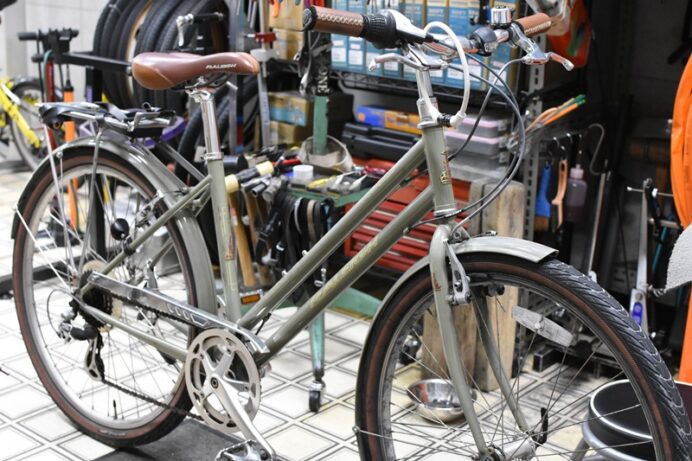こんにちは! 京都出町TAKENAKAです。 ラレー CLB-Sをご愛用のお客様から点検・メンテナンスを承りました。ありがとうございます。ブレーキシューがかなり消耗していましたので交換しました。当店では新車組立時にブレーキケーブル、シフトケーブルを付属のスチールケーブルからステンレスケーブルに交換しています。このラレーの場合も約5年ご使用ですがケーブル類に錆などはいっさい見当たりません。メンテナンスで安心・安全!