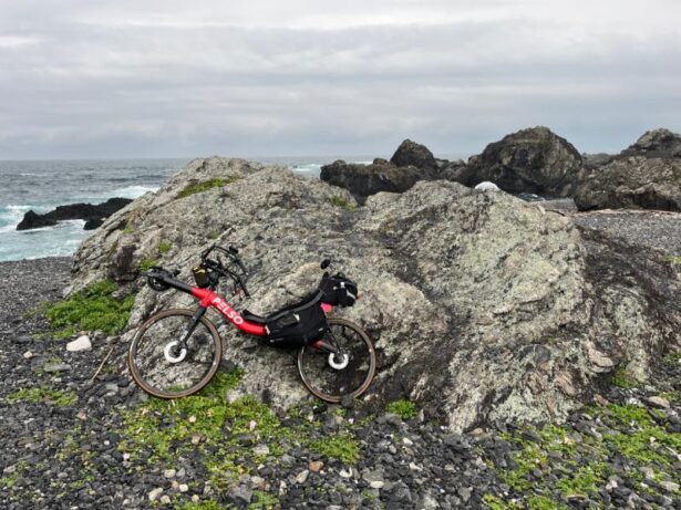 こんにちは! 京都出町TAKENAKAです。 リカンベントのUさんからツーリング途中の写真が届きました。ありがとうございます。京都から西へ西へ、広島からしまなみ海道で四国へ。室戸岬の時点で881km走行ですがまだ予定の半分も走っていないそうです。