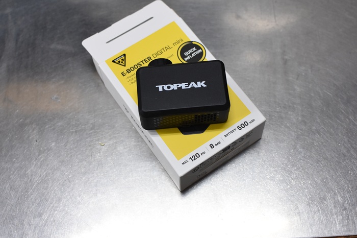 こんにちは! 京都出町TAKENAKAです。TOPEAK(トピーク)の小型電動エアーポンプ E-BOOSTER DIGITAL miniが再入荷しました。先に発売されていましたE-BOOSTER DIGITALを少し小型化したもので、29g軽い120gに仕上がっています。設定した空気圧に達すると自動で止まります。小型携帯ポンプやCO2カートリッジの代わりに携帯される方が増えています。¥13,200(税込)